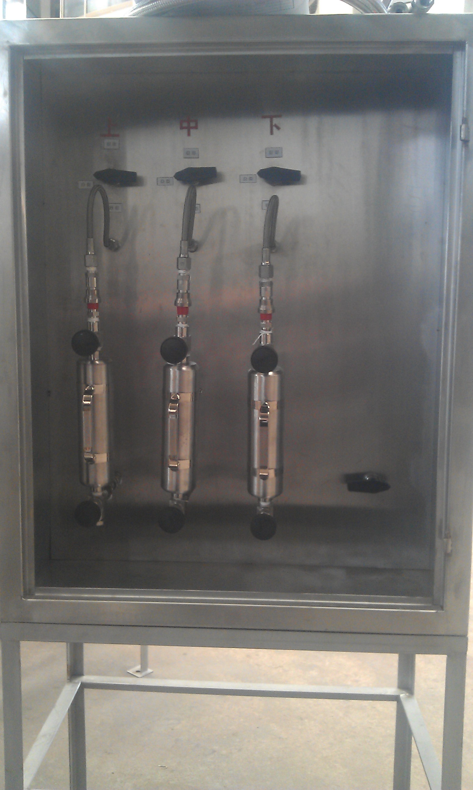 罐下密闭取样器是针对有些罐内的介质是有毒,易燃易挥发的(如笨、液化气及芳烃等),容易造成采样化验结果与实际不符而给生产起误导作用,还有就是有毒的介质,对工人产生危害,而研制开发的采样器,将采样瓶从快速接头拔出,简单方便,而双向自封式快速接头保准采样端不出现滴漏现象。工人直接将采样瓶取出拿到实验室,全程实现了全密闭,保准了样品的准确性,以及工人接触不到样品,保证了安全性。